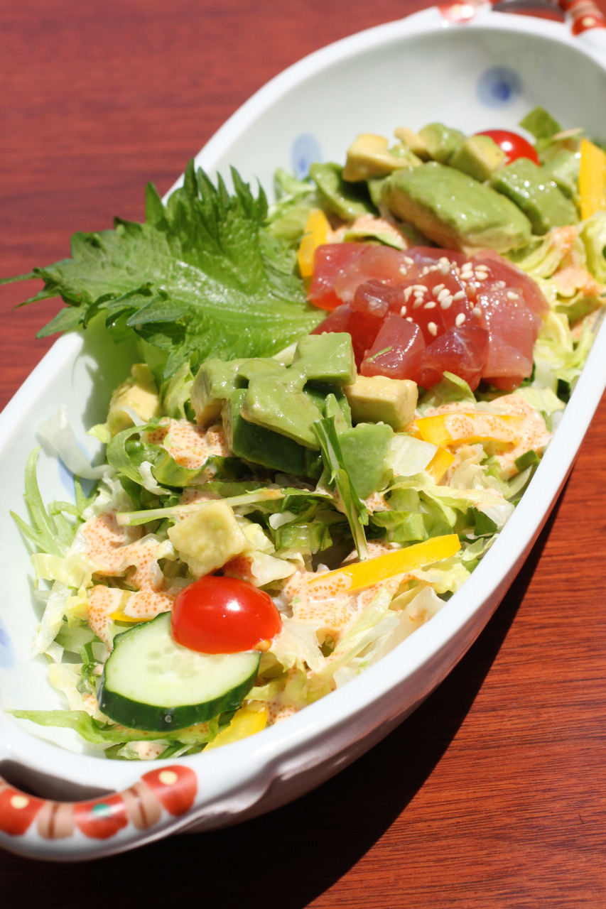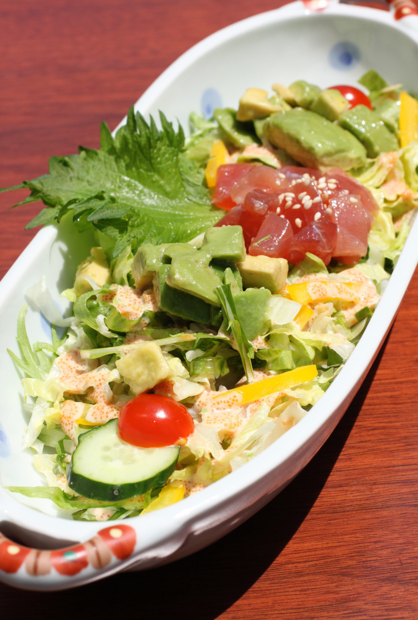 ご飯の1番人気、アボカドとマグロのご飯、明太子マヨソース